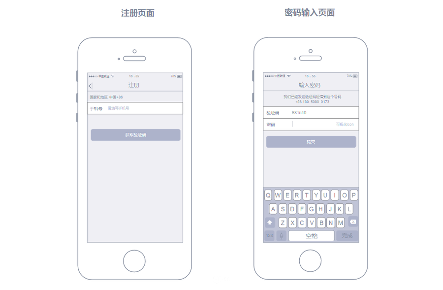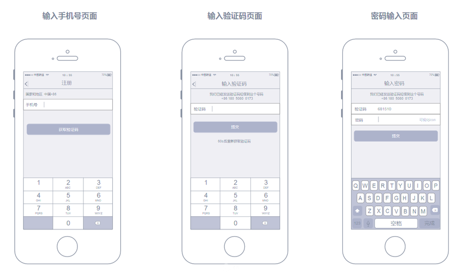對(duì)于一個(gè)不涉及到支付的APP,注冊(cè)頁(yè)面上僅需要以下流程就夠了: