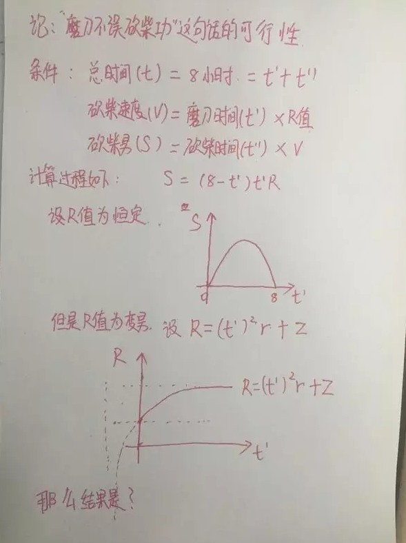 條件1:S=t×V,砍柴時(shí)間(t)越長砍柴量(S)越多,且假設(shè)為正比關(guān)系 。