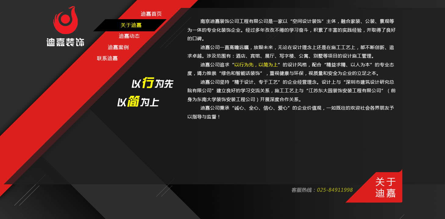 南京迪嘉裝飾工程有限公司是一家專注設(shè)計(jì)效果和施工質(zhì)量的專業(yè)化裝飾企業(yè)。經(jīng)過(guò)多年孜孜不倦的學(xué)習(xí)奮斗,積累了豐富的實(shí)踐經(jīng)驗(yàn),并取得了良好的口碑。