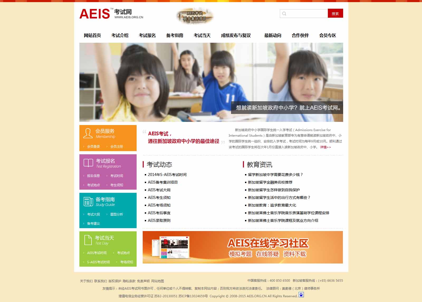 簡介:新加坡政府中小學(xué)國際學(xué)生統(tǒng)一入學(xué)考試(Admissions Exercise for International Students)是由新加坡教育部專為有意申請就讀新加坡政府中、小學(xué)的國際學(xué)生統(tǒng)一組織、安排的入學(xué)考試,考試時(shí)間為每年9月或10月。