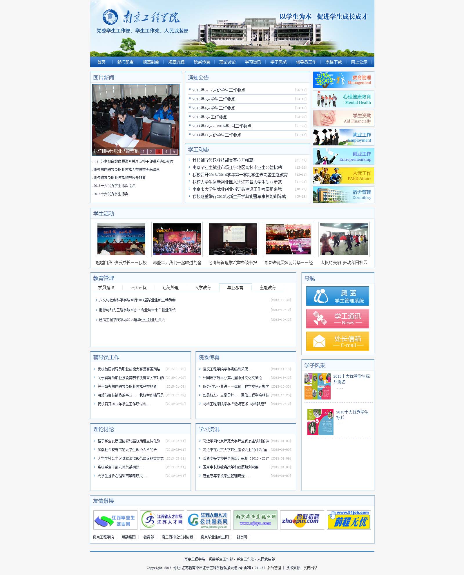 南京工程學(xué)院坐落于 歷史文化名城南京,是江蘇省屬普通高校,是全國高等學(xué)校教學(xué)研究會(huì)副理事長單位、全國應(yīng)用型本科院校專門委員會(huì)主任委員單位和中國產(chǎn)學(xué)研促進(jìn)會(huì)常務(wù)理事單 位,也是國家“卓越工程師教育培養(yǎng)計(jì)劃”首批試點(diǎn)高校和國家“CDIO工程教育模式改革研究與實(shí)踐”試點(diǎn)高校之一。